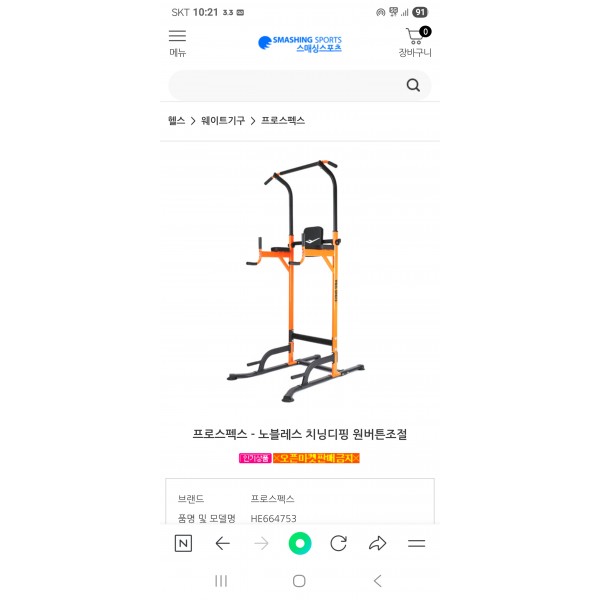 프로스펙스 치닝디핑 판매합니다 모델명은 HE664753입니다 구매 가격은 260,000원입니다